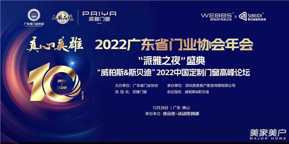 12月28日,2022广东省门业协会年会、“威柏斯&斯贝迪”2022中国定制门窗高峰论坛暨“派雅之夜”广东省门业协会十周年盛典,在佛山金鼎国际宴会厅隆重举行。威柏斯&斯贝迪对本次活动给予大力支持,作为2022中国定制门窗高峰论坛冠名单位,威柏斯&斯贝迪董事长林福生亲临现场,并带来精彩的分享。