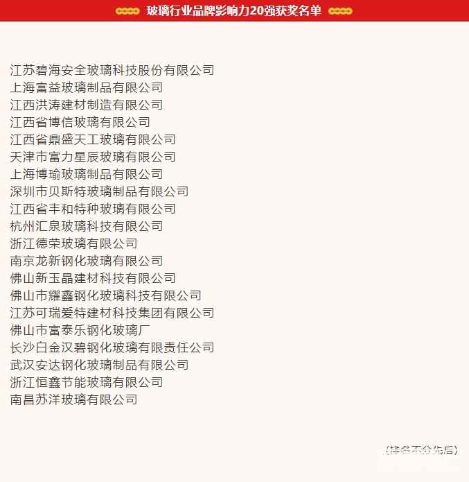 安义县第一届建材产业“凤凰奖”评选出“门窗行业品牌影响力20强”“型材行业品牌影响力20强”“玻璃行业品牌影响力20强”“五金、胶条等其他配套品牌影响力20强”“全国门店经销商20强”“行业新秀人物20强”等6个类别奖项,共计120个获奖企业和个人。