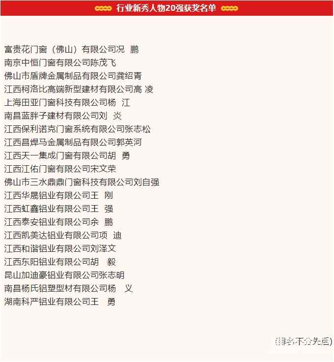 举办此次评选活动,旨在推动铝型材产业的持续发展,树立典型引导人、激励人、教育人,鼓励全体铝材人、门窗人凝心聚力、比学赶超、精益求精。