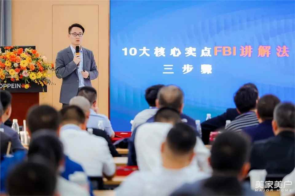欧派·欧铂尼门窗销售培训主任陈伟振对“W计划”模式的销售落地进行补充,他表示:“只有全面迭代升级我们的销售思维,全维度塑造产品价值,才可以卖好产品。”以产品为本,通过FBI讲解法重塑产品优势,更好地助力终端销售落地。此外,重磅推出行业首个封窗套餐,从根源上解决消费者对门窗产品矩阵混乱的顾虑。