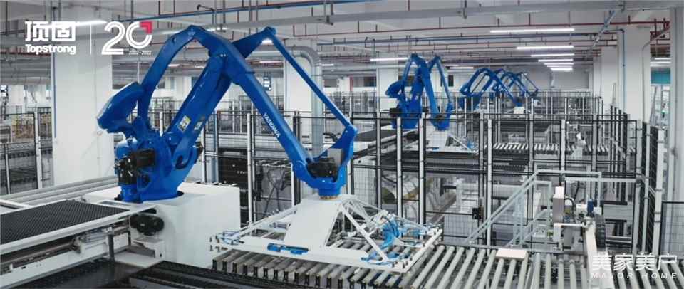 顶固第五期智能制造生产基地现已建成了国际顶尖的智能生产线。其中,顶固自研、行业首创环状机器人线边库+AGV小车的生产方式,实现封边板材自动运输至钻孔连线,预计提升20%的生产制造效率。