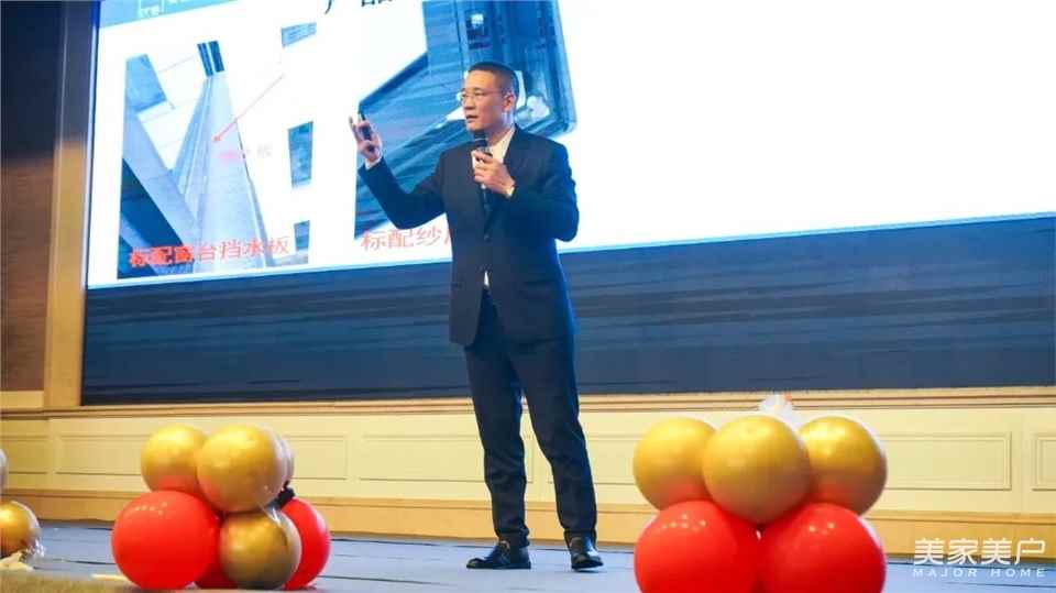 随后,英皇岛门窗总设计师李峰先生为新产品做了详细地介绍,他从产品的工艺、性能、特色分别进行了讲解。