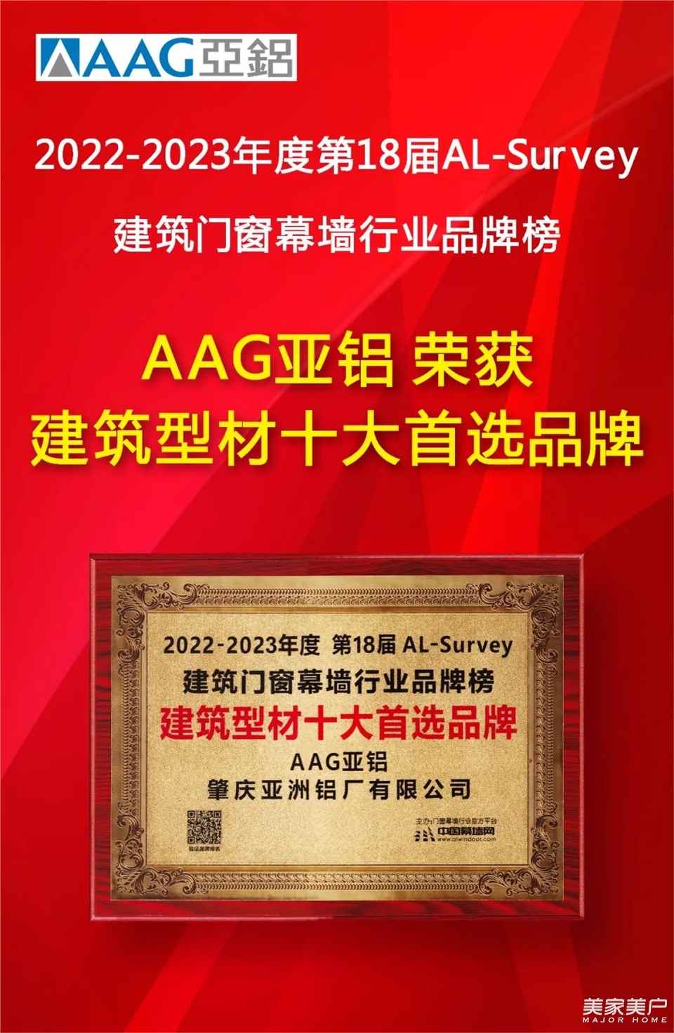 “铝”创卓越|AAG亚铝获颁“行业十大首选品牌(铝型材类)”荣誉