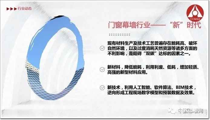 门窗幕墙行业在“双碳目标”下,即将跨入新时代!现有的门窗幕墙材料,大部分以金属、玻璃和天然石材为主,这些材料的生产普遍存在能耗高、破坏自然环境,以及过度消耗天然资源等诸多方面的不利影响,是阻碍“双碳”达标的因素之一。