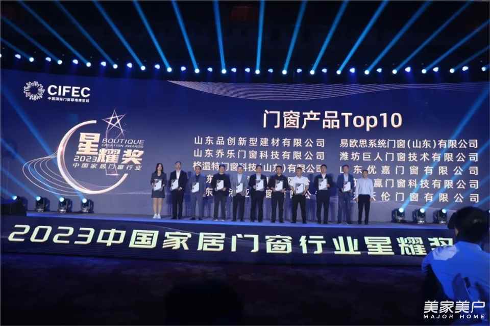 中国(临朐)家居门窗博览会一直以来都在努力寻找、挖掘、传播行业昂扬向上的榜样力量,打造更具专业度和影响力的行业奖项。“星耀奖”紧跟时代脉搏,传承行业根脉,书写行业未来,得到业内外的高度关注和热情参与,自评选活动启动以来,主办方收到了百余份行业企业资料,网络投票环节累计有效票数达到160余万票,访问量高达523万人次,活动的影响力和传播力得到了空前提升。晚会现场揭晓了“星耀奖”获奖名单并进行颁奖。