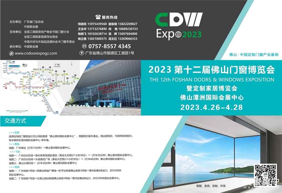 倒计时3天!由广东省门业协会主办,全国工商联房地产商会节能门窗分会、全国工商联家具装饰业商会、中国木材与木制品流通协会木门窗专委会协办,中居联会展承办的第十二届佛山门窗博览会暨定制家居博览会,即将于4月26日-28日,在广东佛山潭洲国际会展中心扬帆起航!