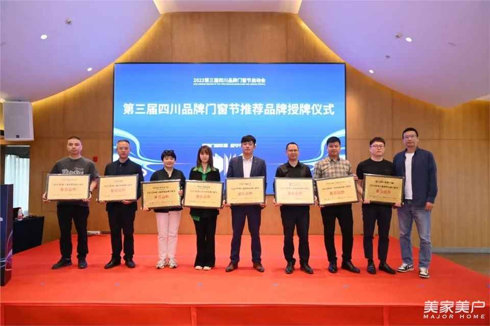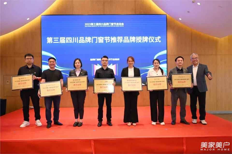 协会及媒体代表为优秀参与品牌颁发“2023第三届四川品牌门窗节推荐品牌”奖牌。