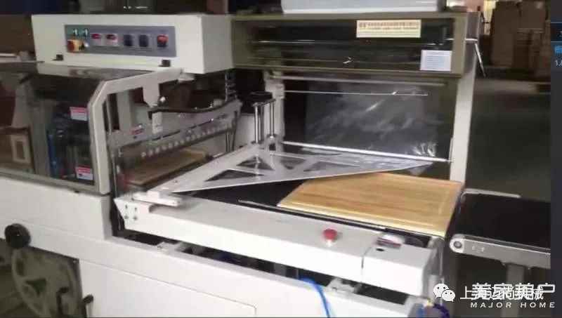在木制品加工到成品后会进入包装工段,热缩膜的包装已经逐渐被木制品行业接受并相信会将编入正常的生产工序,由于其高效和可能的无人化正在走进越来越多的木制品工厂。热缩膜是通过膜的先加热后冷却从而将膜紧缩在工件表面,对工件表面起到保护和防潮等作用。