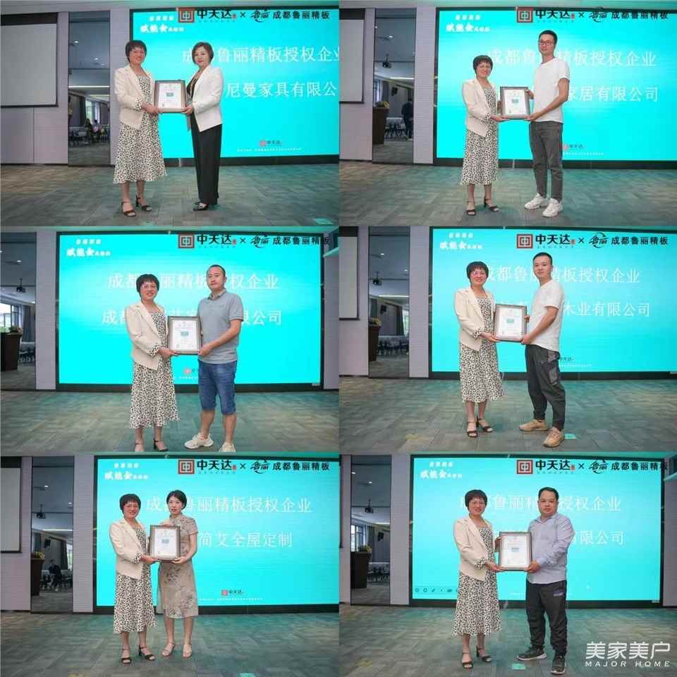 会议现场,主办方举行了鲁丽精板的授权仪式,中天达木业创始人邵建兰为获得经营权的商家颁发了授权书。