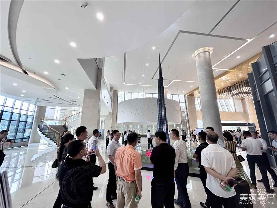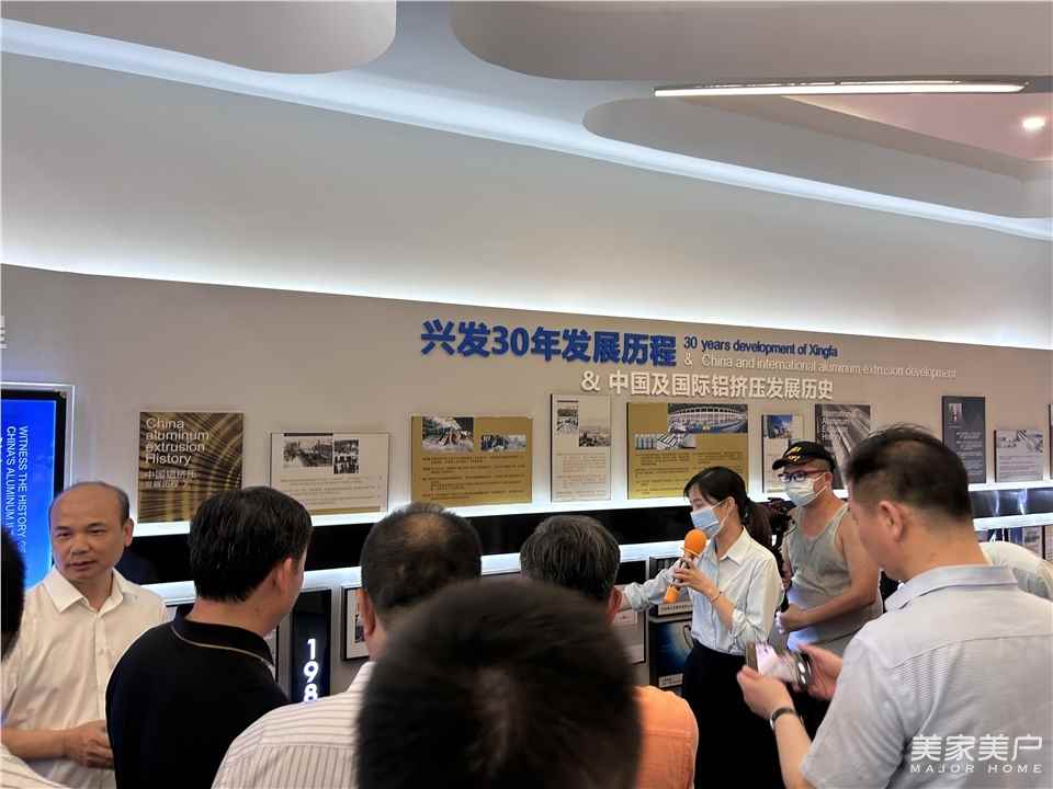 在兴发铝业集团运营总监郑庆生的陪同下,广东省门业协会一行兴发铝业展厅。郑庆生总监详细介绍了兴发铝业智能化升级的历程。