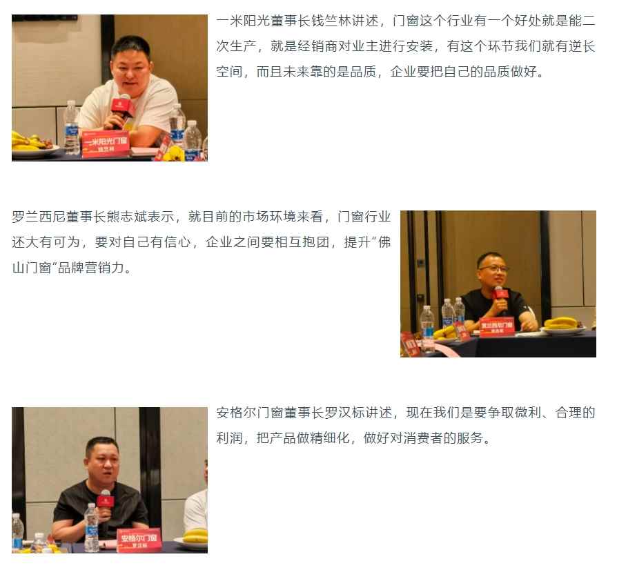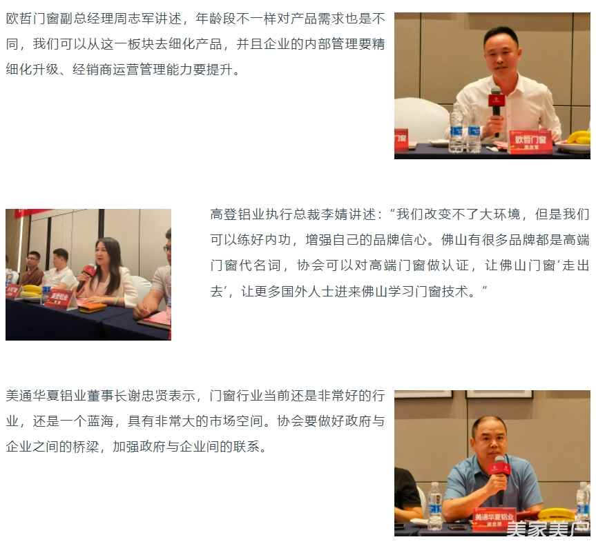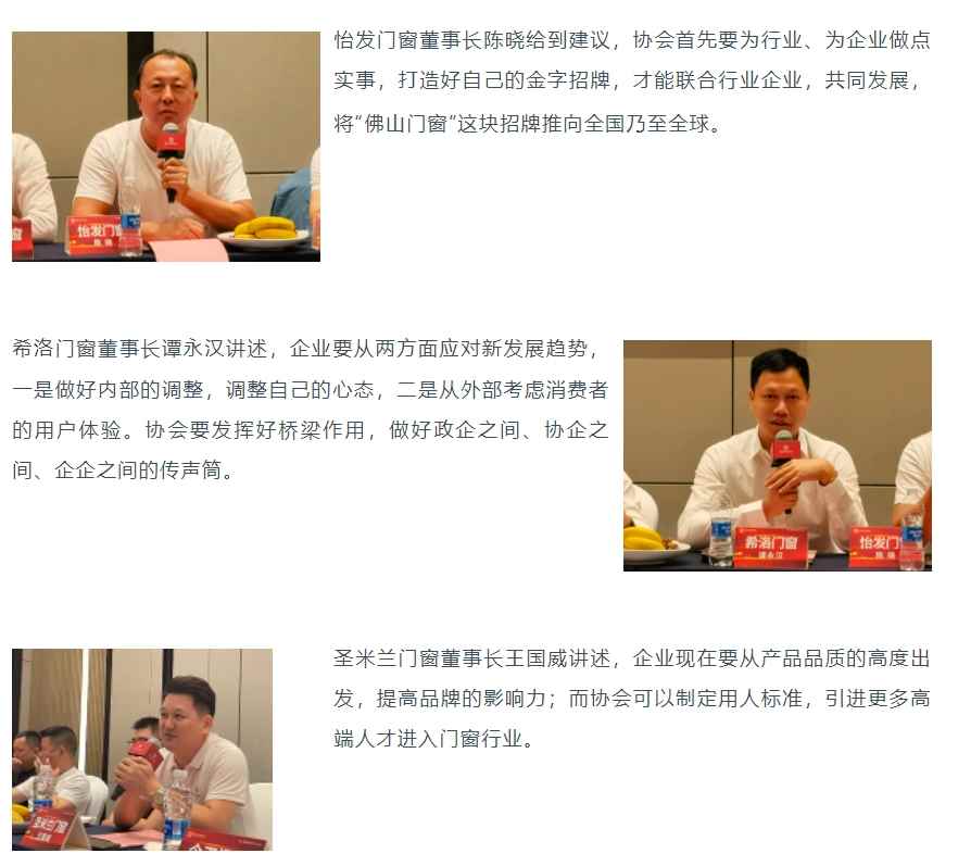 座谈会议上分别就“门窗企业要如何应对新发展趋势”、“如何让‘佛山门窗’成为中国乃至世界的一张名牌”两个议题作讨论,在座嘉宾各抒己见并对协会发展提出建设性建议。