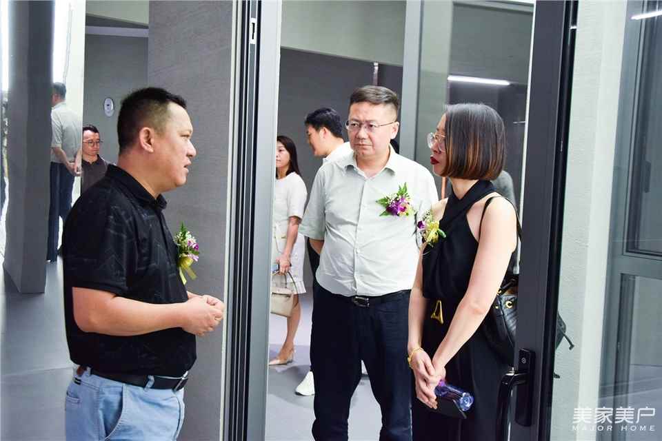 庆典圆满结束,在安格尔领导及工作人员的带领下,大家在营销中心前台进行了合照。随后由安格尔领导及员工的带领下分别参观了营销中心展厅。安格尔讲解员对安格尔的企业文化、产品内容、产品功能与优势进行了详细的介绍。智能化的门窗产品、品质与时尚并存的门窗、时尚现代化的展厅,充分展现了安格尔的品牌实力。