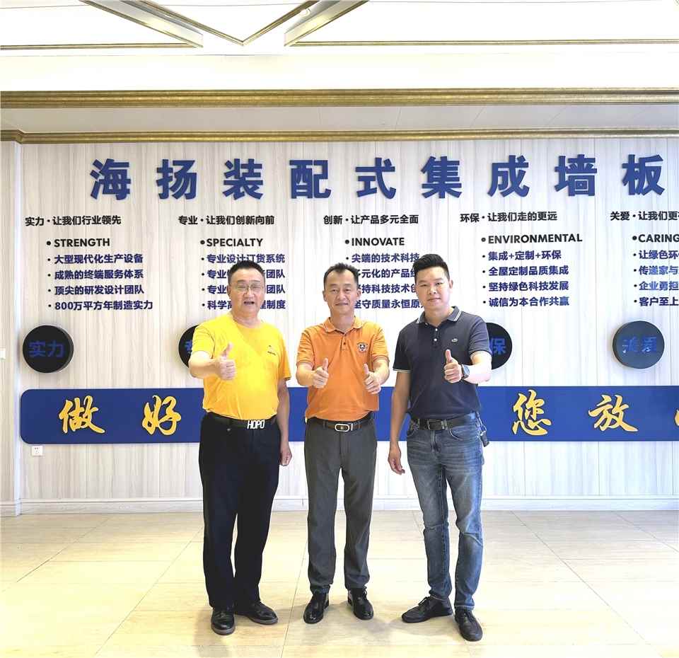 促进供应链稳定畅通,推动产业链可持续发展,一直是广东省门业协会遵循的办会原则。6月14日,广东省门业协会执行会长徐生、秘书长饶德亮,来到佛山市海扬新型建材科技有限公司,详细了解其最新研发的各种高端环保集成墙板,为门窗企业提质增效创造更多可能,受到海扬装配式集成墙板董事长陈军的热情接待。