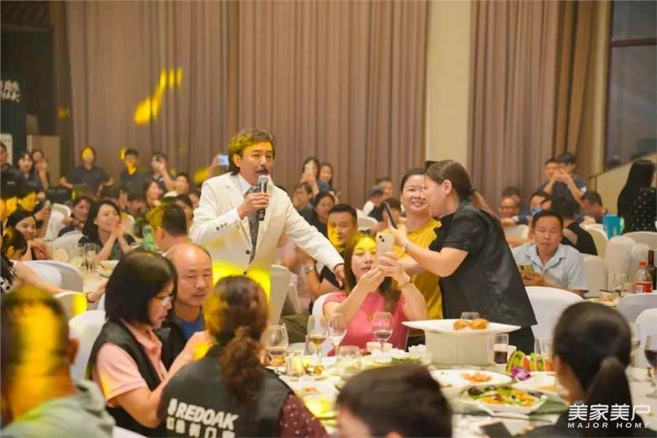 晚宴现场,嘉宾们盛装出席,面带笑容,迈着最自信的步伐,迎接他们的荣耀时刻。红橡树门窗领导们及核心团队一起到台上祝酒,感谢每一位红橡树门窗经销商家人们的一路相伴,用真心和激情共同开启了品牌全新篇章。