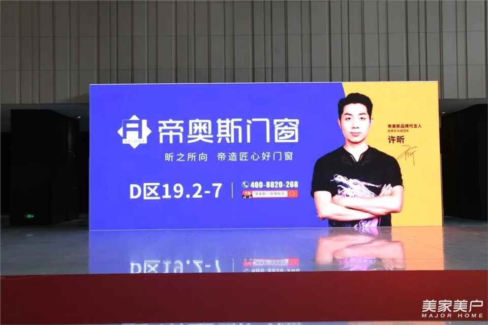 走近2023中国建博会(广州)帝奥斯门窗展馆,可以看到帝奥斯全新的品牌代言人——乒乓球世界冠军许昕,新SI形象的深蓝色贯穿展馆内外,年轻化、运动化、新潮化的品牌形象,给人眼前一亮的视觉体验。