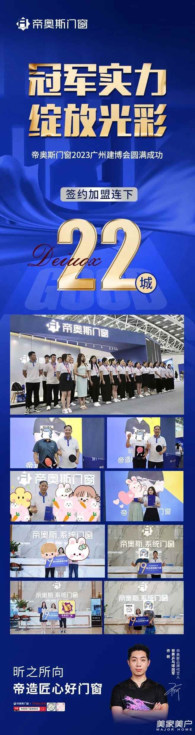 2023年7月8日-11日,第25届中国建博会(广州)在广州琶洲广交会展馆、保利世贸博览馆盛大举办。帝奥斯门窗强势出征,携最新的品牌战略、原创新品与设计理念、全新品牌形象IP等为观展者带来舒适人居新体验,并创造了斐然的招商成果。