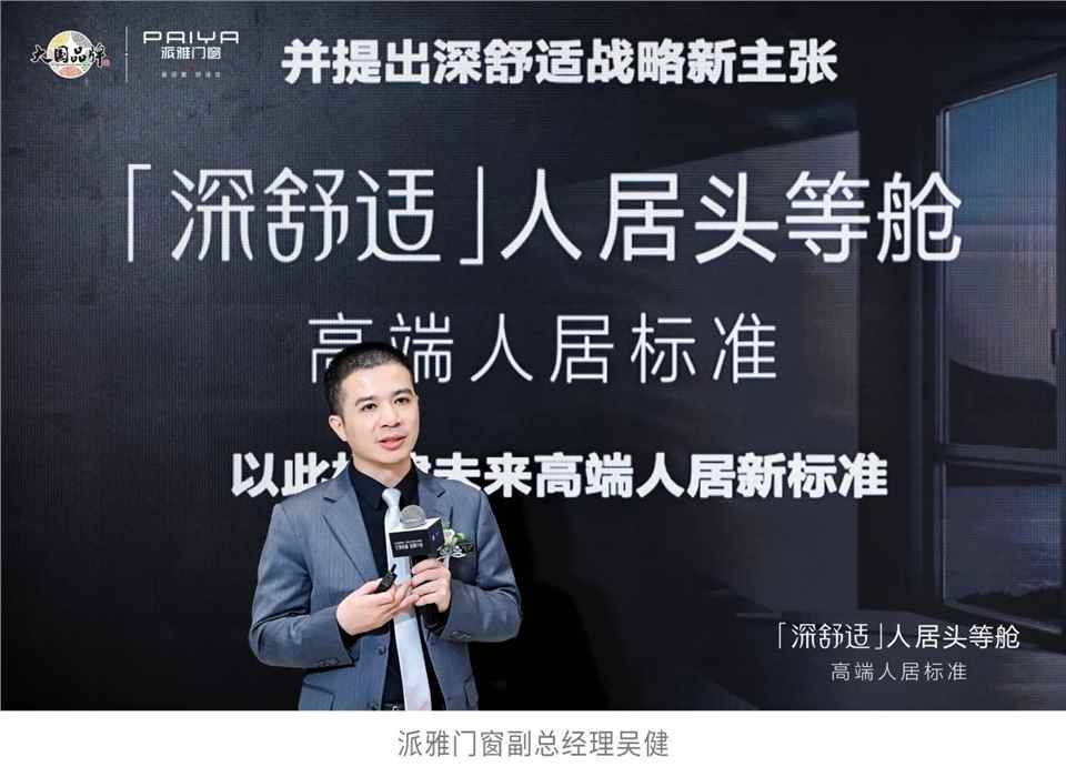 面对中国人居高品质舒适生活新趋势,对于如何精准布局把握新一轮发展的核心动力,派雅门窗副总经理吴健就《派雅门窗品牌全新价值战略》进行了全面解读。吴健认为,2023年派雅应顺势升维,锚定品牌高价值领域,推出全新品牌理念、全新价值战略与价值体系,并提出深舒适战略新主张——深舒适人居头等舱,用高端人居标准重新定义门窗,打造深舒适人居头等舱。