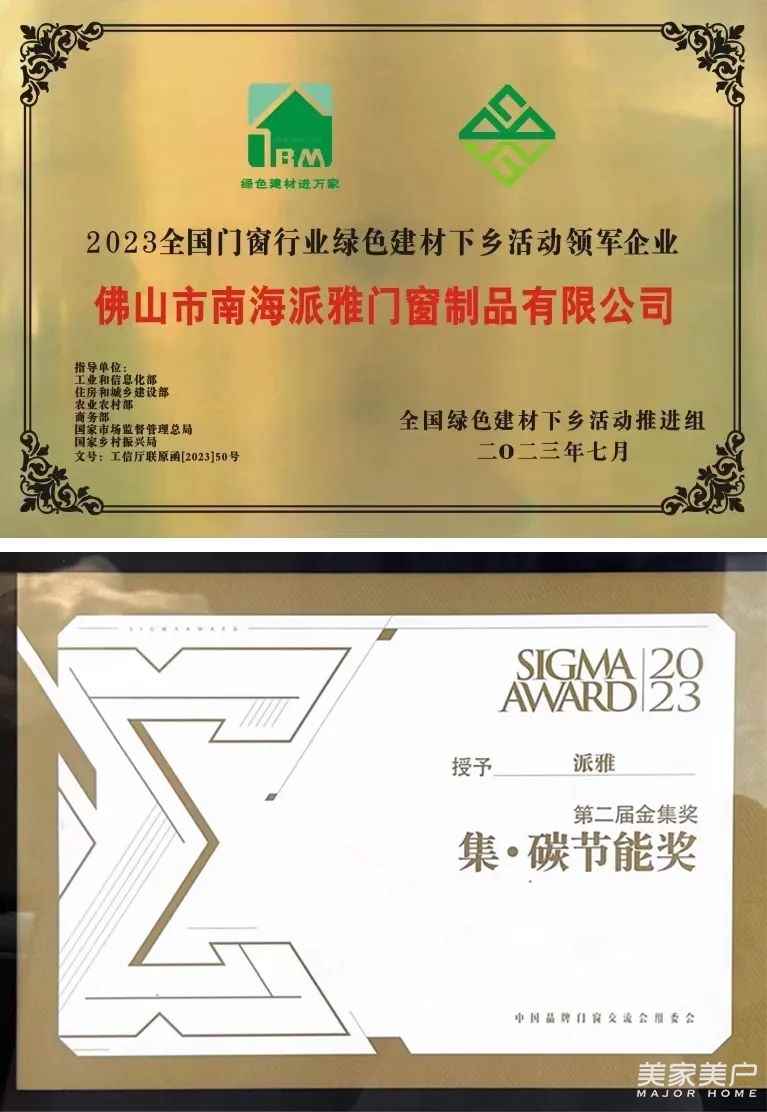 7月9日,派雅门窗凭借「深舒适」门窗在节能方面的重要贡献,荣获“第二届金集奖集·碳节能奖”,并获颁“2023全国门窗行业绿色建材下乡活动推广企业”称号。