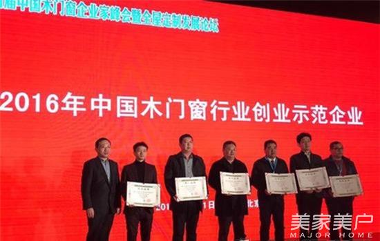 工业和信息化部运行监测协调局局长余涛为获得2016年中国木门窗行业创业示范奖的企业颁奖