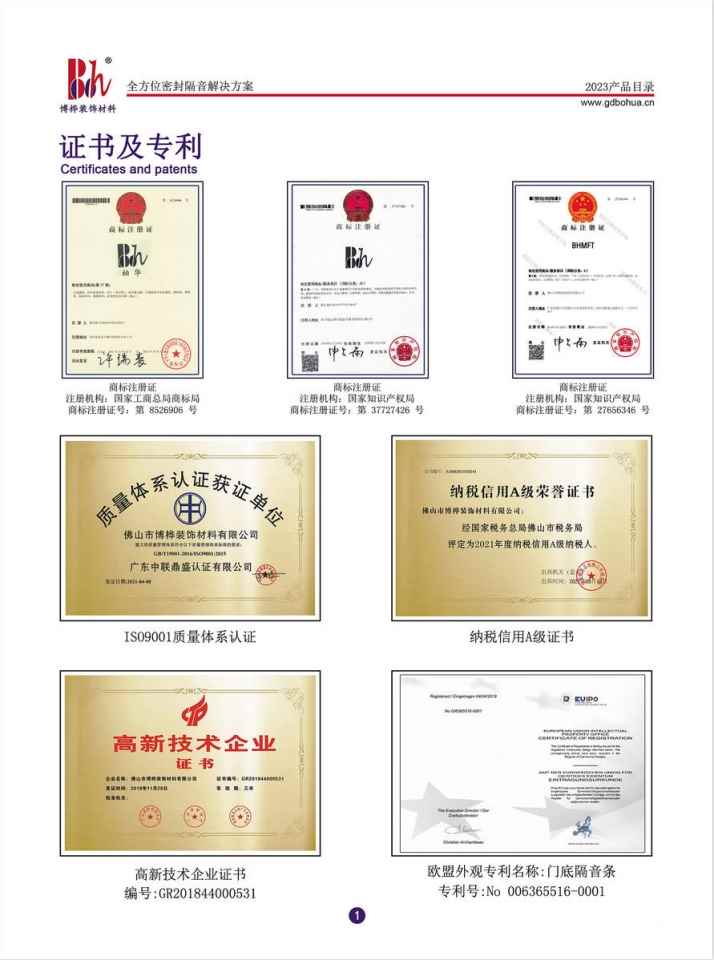 据了解,“博桦”是一家专注于研发、生产、销售于一体,专注于为门窗行业提供全方位密封隔音解决方案的供应商。凭借自身科技优势,依托多个技术研发平台,组建了一支优秀的生产制造团队,产品先后赢得了门窗、门窗五金、大型房地产开发商、装饰工程公司等行业龙头企业的青睐。10多年来,“博桦”先后获得各类发明、实用新型、外观等专利证书20多项;获得高新技术企业称号(GR201844000531)、通过ISO9001:2015质量管理体系认证、成为中国商业联合会知识产权分会会员。
