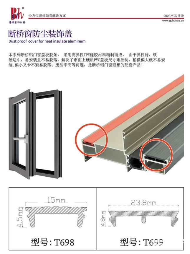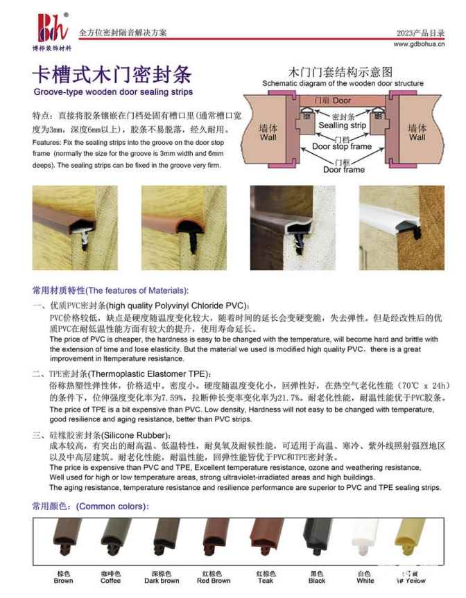 “博桦”主要产品有:木门密封条系列、防火膨胀密封条系列、门底自动升降密封条系列、橱柜衣柜防尘条系列等各类橡塑五金密封隔音产品。“博桦”产品广泛应用于隔音木门窗、铝合金门窗、橱柜衣柜、防火门、家具建材、酒店隔音工程、净化工程、五金机械以及公共设施等领域。