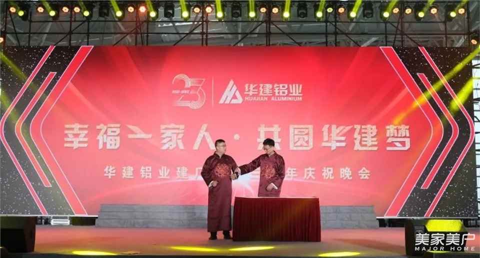 8月20日晚,临朐国际会展中心A2馆,华灯闪耀,灯火辉煌,“幸福一家人 共圆华建梦”华建铝业建厂二十三周年大型庆祝晚会在这里隆重举办。晚会同时在华建科技、国内外各地办事处设立分会场,并通过抖音、微赞全程直播。集团领导、各管理中心、职能服务部门、分厂、成员企业及驻外办事处全体干部员工万余人共同庆祝华建大家庭的生日,表达对华建铝业的美好祝福。