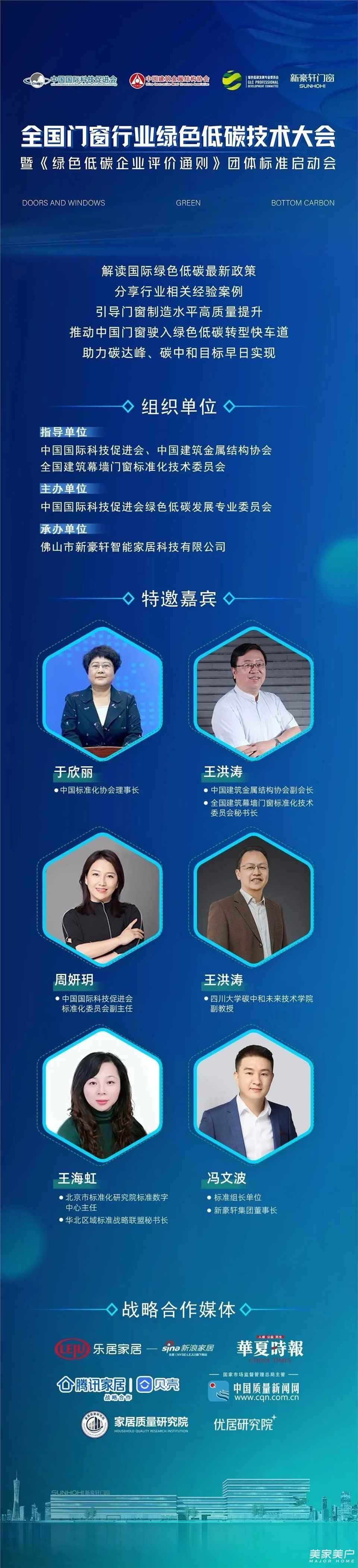 8月26日,由中国国际科技促进会绿色低碳发展专业委员会主办、新豪轩门窗承办的“全国门窗行业绿色低碳技术大会暨《绿色低碳企业评价通则》团体标准启动会”,将在广东云浮举行。本次大会将汇聚多名建筑及低碳领域专家、多个行业协会领导、多家标准参编单位嘉宾,聚焦“绿色低碳企业”的现在与未来,带来国际绿色低碳最新政策解读,共话行业相关经验案例,探索中国门窗绿色低碳发展新路径,助力碳达峰、碳中和目标实现。