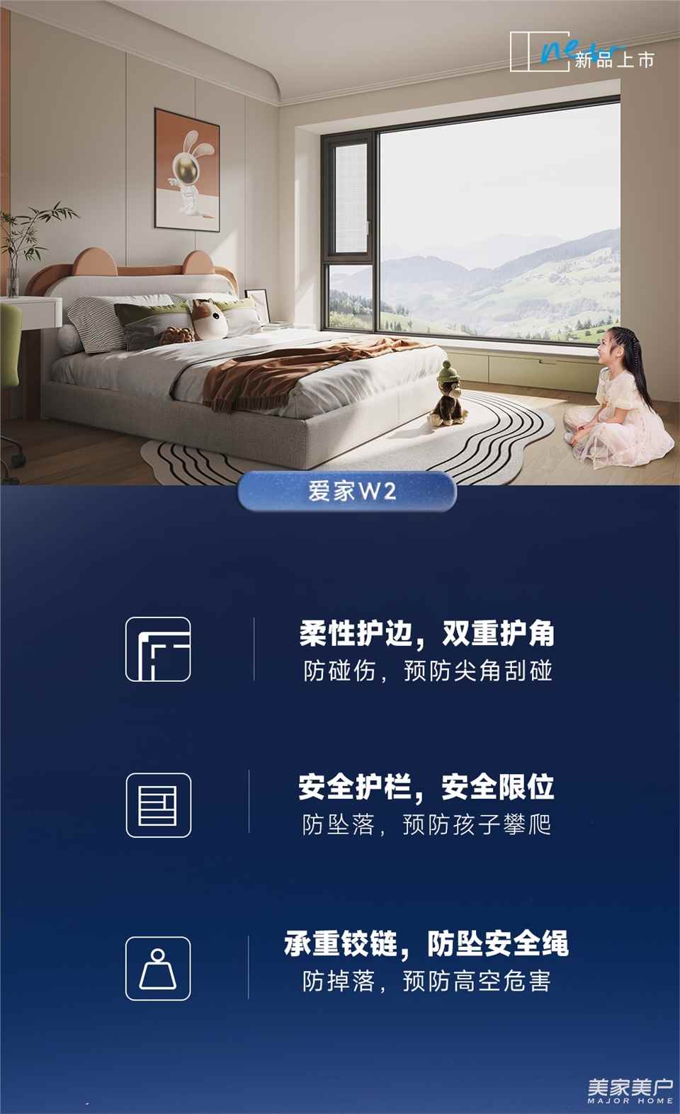 • 预防坠落 • 安全护栏+10cm开启限位预防孩子攀爬坠落同时保障房间通风。