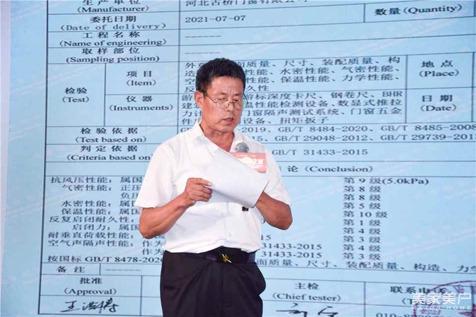 河北古桥门窗有限公司董事长张连元带来《铝合金系统门窗全系统创新结构》新品介绍,分享了河北古桥门窗超强密封窗系列独创的“水淹式”密封检测装置。该产品仅靠胶条进行密封(不打密封胶),整窗注水 30 厘米深,带水放置三个月,角部无渗水,整窗滴水不漏,性能十分优异。