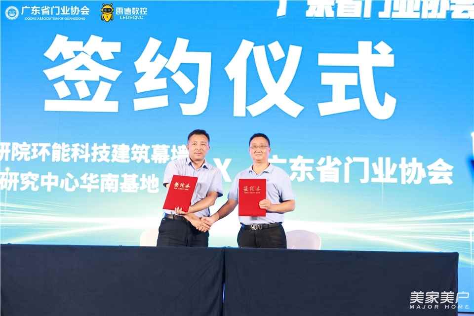 随后,广东省门业协会执行会长徐生与国家建筑幕墙门窗质量检验检测中心主任张喜臣签订合作协议,这意味着广东省门业协会与国家建筑幕墙门窗质量检验检测中心正式达成战略合作伙伴关系,共同推动广东定制门窗行业品质升级。