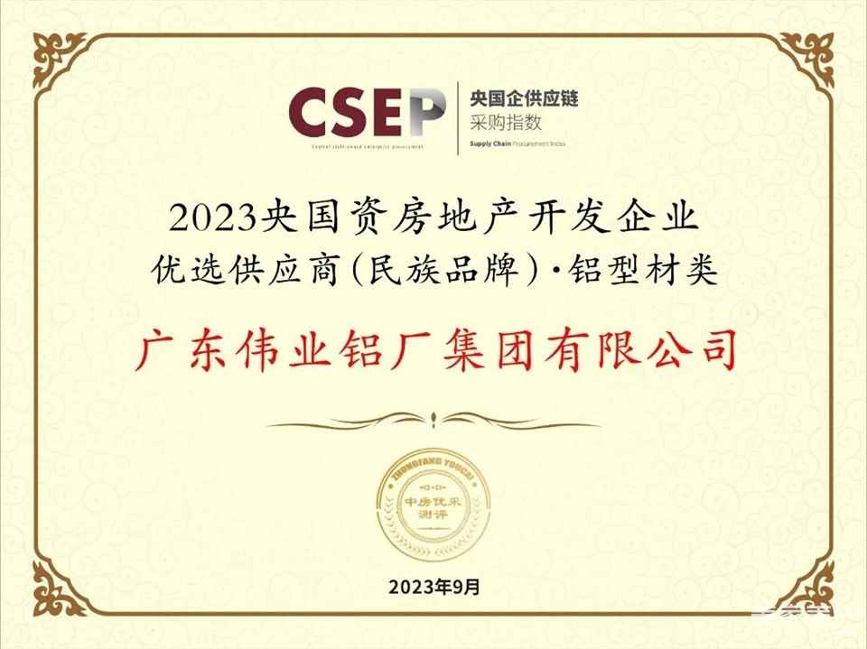 实至名归丨伟业铝材荣获“2023央国资房地产开发企业优选供应商(民族品牌)”两大殊荣