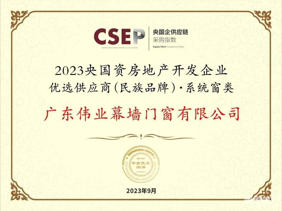 在发布会上,凭借经营数据、工程业绩、供应水平、绿色产品、用户评价、专利技术和品牌影响等突出优势,伟业铝材荣登“2023央国资房地产开发企业优选供应商(民族品牌)·铝型材类”;伟业幕墙门窗荣登“2023央国资房地产开发企业优选供应商(民族品牌)·系统窗类”!2大重磅荣誉的授予,既是对伟业铝材综合实力的认可,也是伟业铝材强大品牌影响力的最好体现。