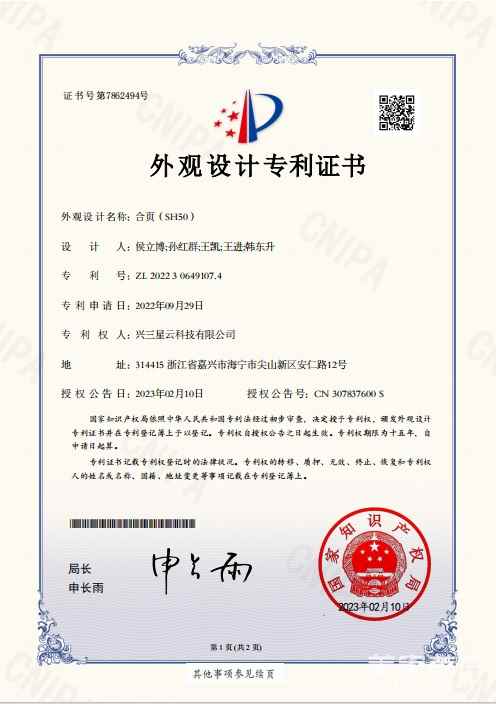知识产权是国家发展的重要战略,是推动企业创新和经济发展的重要支撑。兴三星高度重视专利、技术等知识产权的创造、运用、保护和管理,为公司提质增效注入新动力,通过了知识产权管理等体系的认证,是国家高新技术企业、浙江省专精特新企业、省级企业研究院、浙江省知识产权示范企业。