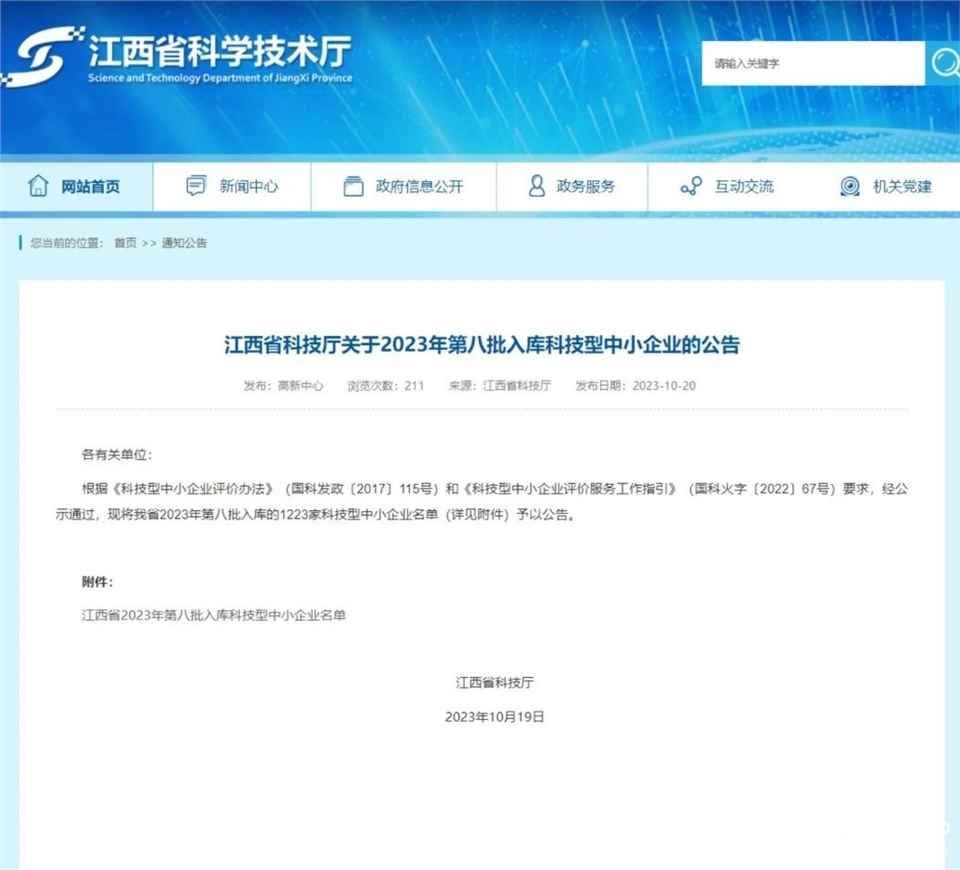 10月19日,江西省科学技术厅发布了《江西省2023年第八批拟入库科技型中小企业名单公告》,高安市欧大师家居科技有限公司成功入库科技型中小企业!这意味着我司在科学技术研究、自主知识产权等方面的技术服务获得官方认可!