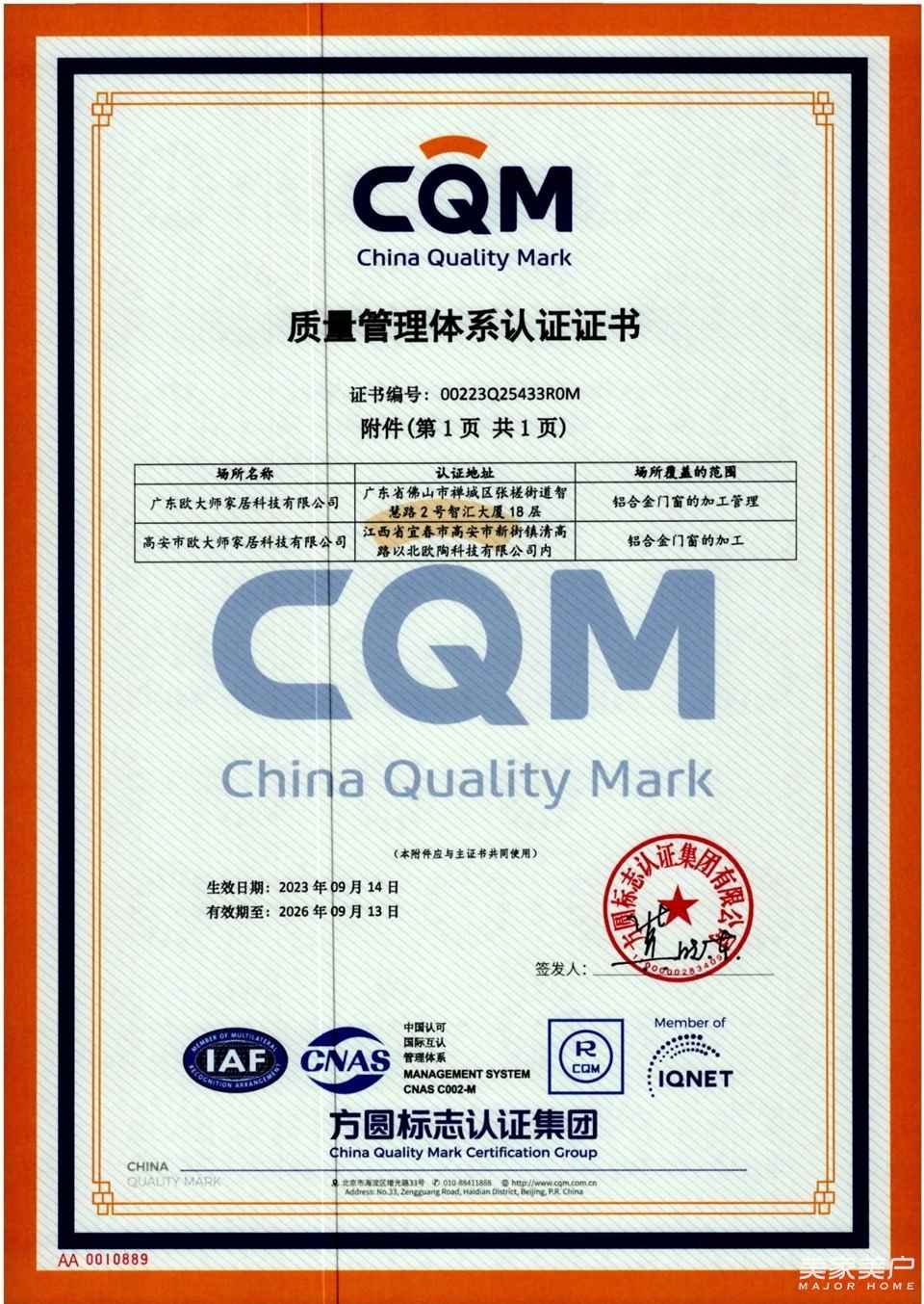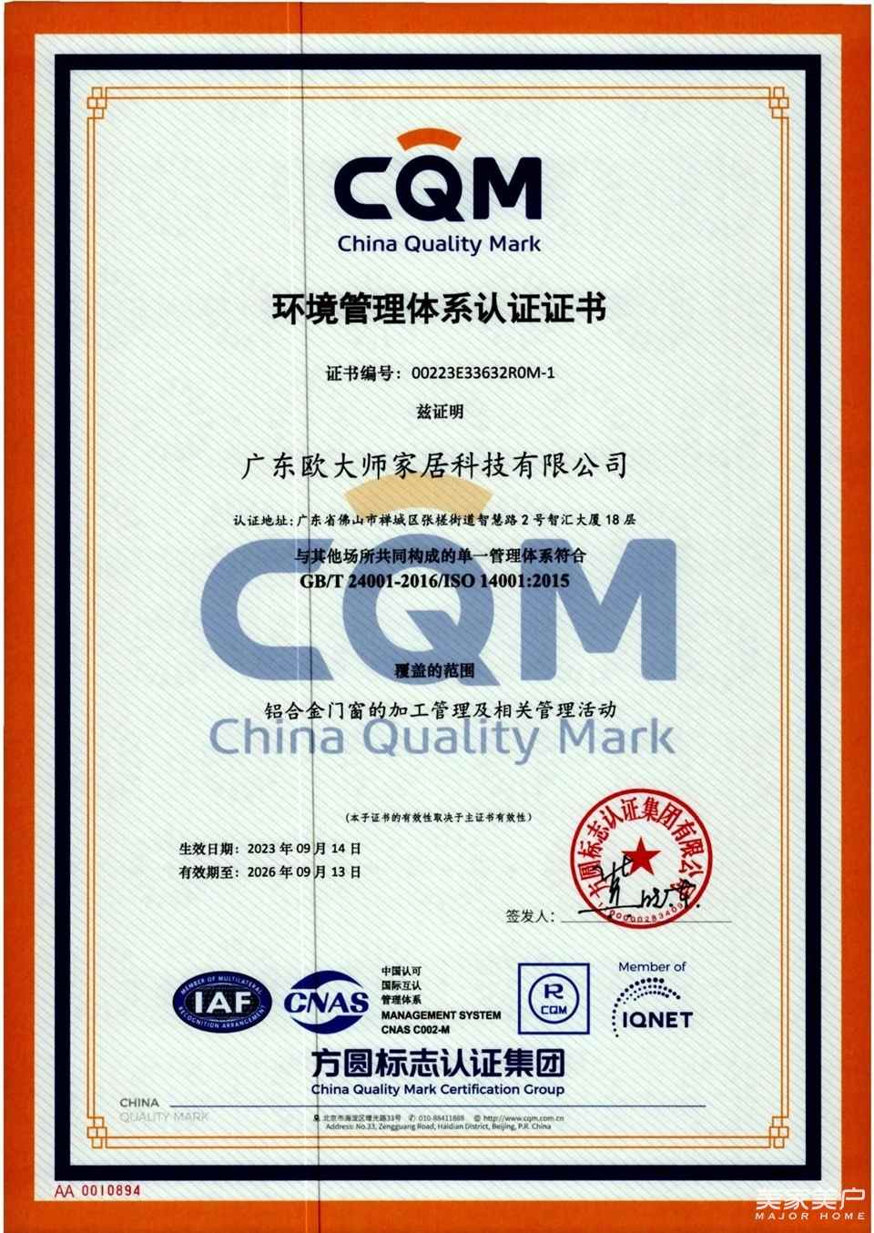 欧大师隔热门窗自创立之初便引进工业4.0智造系统,结合完整细致的工序流程,引领门窗行业向专精特新发展。此次成功入库科技型中小企业以及荣获 ISO三大管理体系认证证书,既照亮了欧大师隔热门窗未来前进的道路,也鞭策欧大师隔热门窗继续秉持着“守护生活温度,贡献低碳世界”的使命。