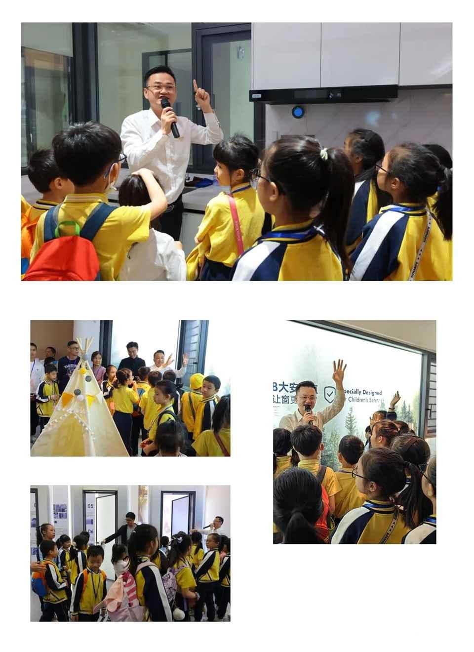 场景化的居家安全知识讲解与超安全门窗体验,激发了孩子们的好奇心与求知欲,纷纷主动提问与体验超安全门窗产品。
