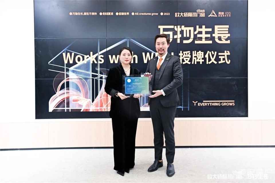 欧大师隔热门窗旗下的产品组(铝合金隔热门窗)经过第三方独立审核,符合WELL 健康建筑标准中“光”概念的相关要求。国际WELL建筑研究院(IWBI)亚洲区副总裁张为舜将欧大师的Works with WEII授权证书交到欧大师总经理陈美红手中,标志着欧大师隔热门窗Works with WELL健康旅程正式启动。
