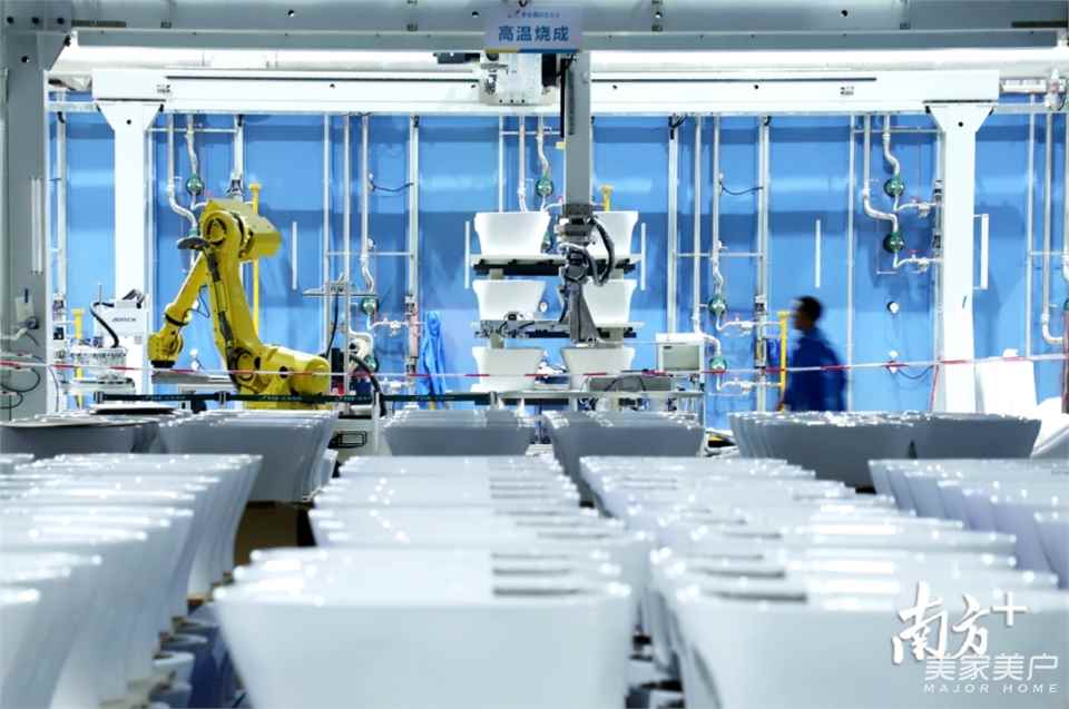 走进碧桂园智能卫浴(潮州)产业园项目一期生产车间,俨然一个“智能工厂”,机器人几乎遍布于各道工序,各种“黑科技”让人大开眼界——高压成型车间里,一个个马桶由高压注浆机快速注浆成型,可实现24小时运行;喷釉车间里,机器人轻舒长臂上演“独臂舞”,喷头上下左右翻飞,灵动自如;机器人码垛不停摆动,红外线扫描后将马桶精准抓起,工序一气呵成;AGV自动运输小车沿着二维码轨道来回穿梭,无论是抓放物品还是搬运距离,都可实现精确操作……——《南方报业》