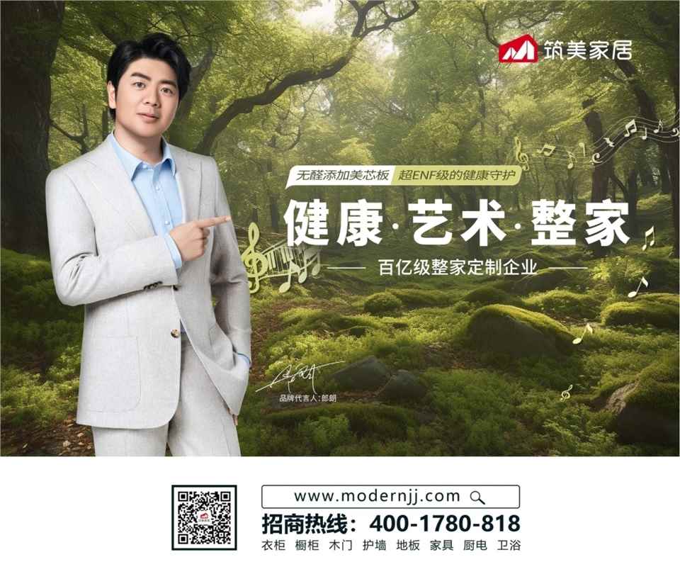 筑美家居以“健康·艺术·整家”为定位,集结国内外优秀设计研发团队,演绎北欧极简、现代简约、轻奢、新中式等年轻人喜爱的主流风格,为用户带来丰富多彩的选择。筑美家居对艺术设计的不懈追求,与郎朗在艺术领域追求卓越的专业精神和执着追求高度契合,公司特邀郎朗担任全球形象代言人,携手为用户缔造健康环保、艺术的幸福家。