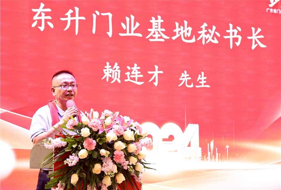 晚会伊始,广东省门业协会生态门专委会秘书长赖连才首先致辞。他表示,“东升门业从2019年发展至今,特别要感谢高沙社区两委班子的关注和支持。目前,东升门业产销分离模式,在广东已显现出特别的成效,在万众齐心之下,一步一步发展壮大。我们坚信2024年,会有更多企业成长起来,继续拓展属于东升门业的广阔天地。”