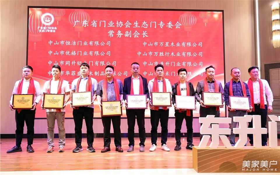 广东省门业协会生态门专委会会长廖健升在致辞时介绍,“生态门专委会从2019年成立至今天,历经虽然辛酸,但我们走过来了,而且发展速度很快,从疫情前的30多家门厂,发展至今92家企业,108个车间,1860个营销个体,180多家上游供应合作伙伴,满满擦亮了中国门业重镇广东小榄东升门业的旗号。”