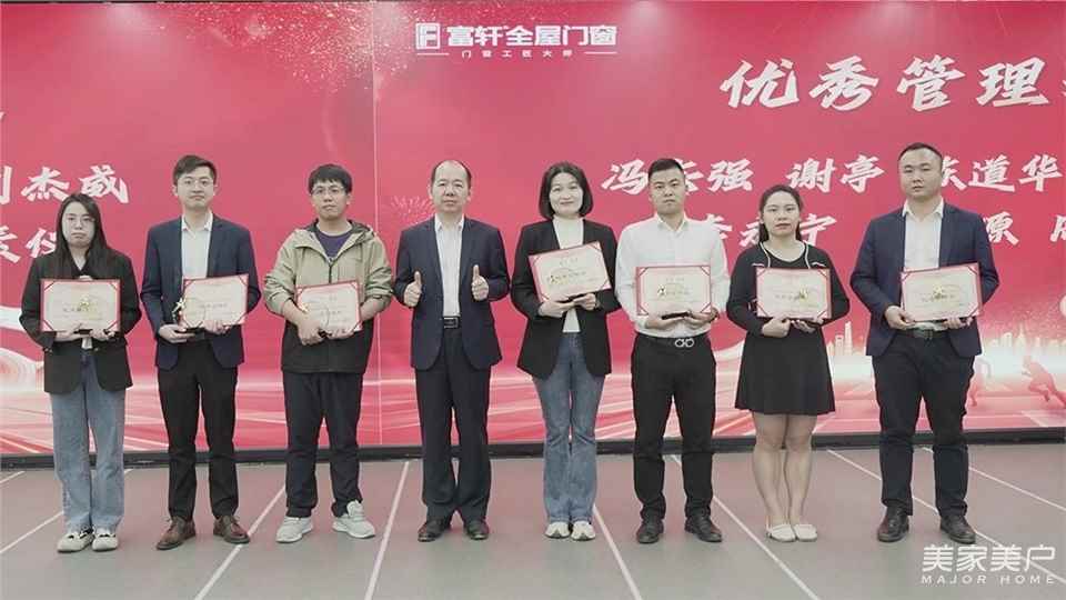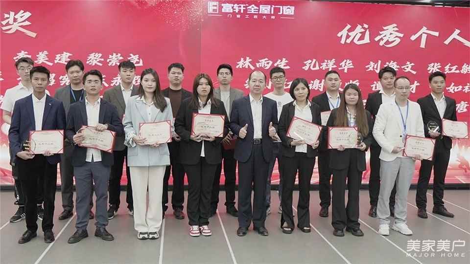 会议的最后,公司举行了一个简单而有意义的颁奖典礼,为在第四季度的工作中表现优秀的员工和管理者进行颁奖,并鼓励全体员工学习优秀标杆的工作态度和敬业精神,在自己的岗位上发光发热,为富轩全屋门窗提质发展积极贡献力量。