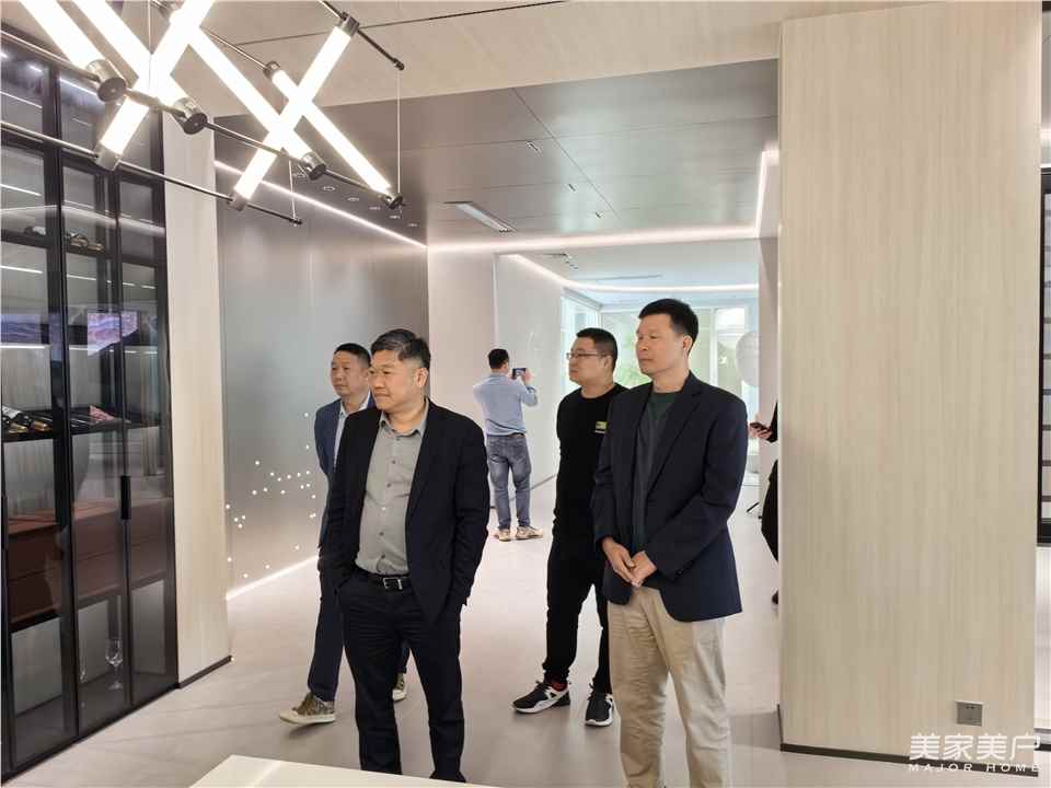 在参观派雅门窗时,东升门业基地企业家们走进派雅新品展厅,详细了解了产品的生产工艺和卖点。
