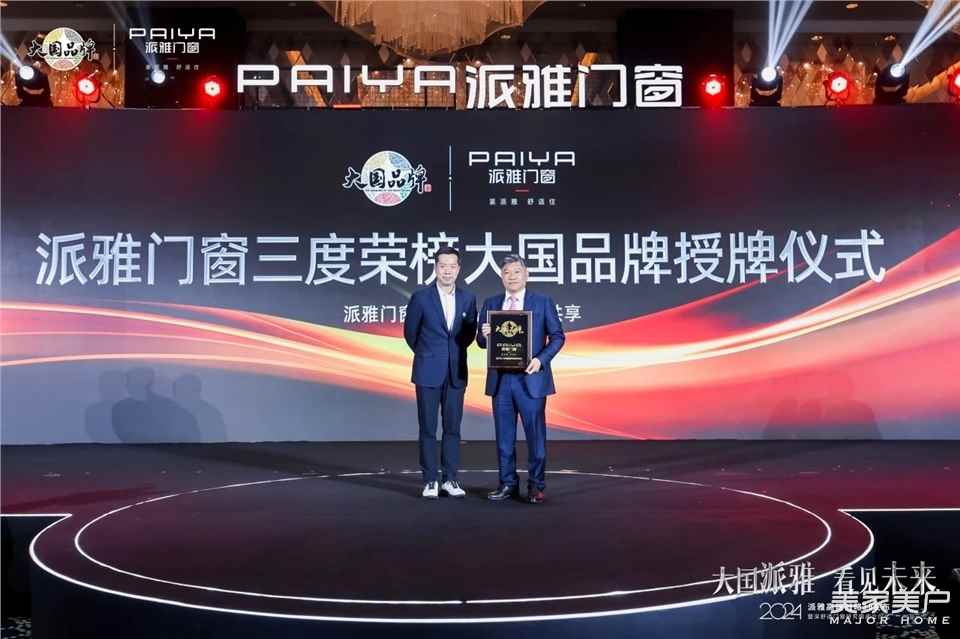2024年,派雅门窗三度入选央视《大国品牌》,共建高价值“品牌国家队”,持续讲好中国门窗品牌故事,向世界展示中国门窗科技品牌的精神与力量。