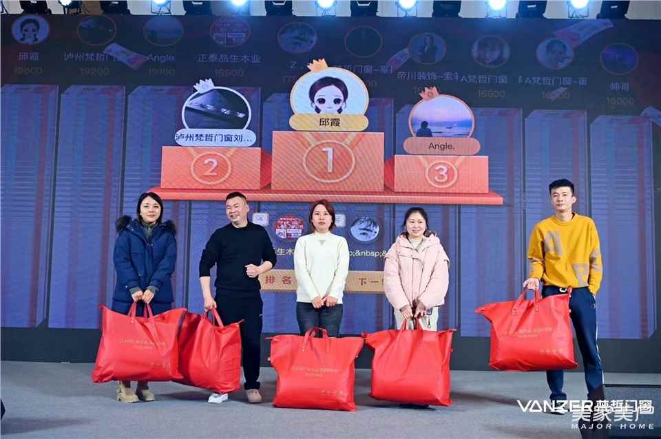 为了鼓励作出积极贡献的经销商,梵哲门窗举行了隆重的颁奖典礼,现场颁发了销售冠军、亚军、季军,杰出贡献奖、最佳渠道奖、市场先锋奖、锐意进取奖、最佳团队奖、卓越贡献奖、最佳新锐奖等奖项。梵哲门窗勉励大家再接再厉,用各自的优异成绩为公司的各项建设添砖加瓦,实现梵哲门窗再攀新高的目标。