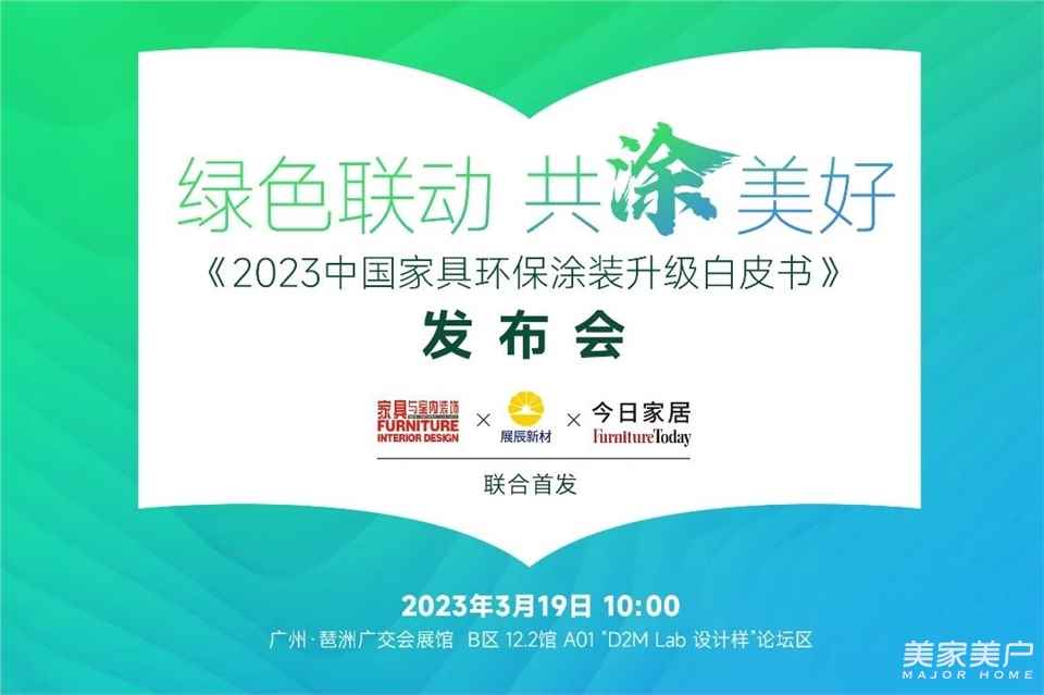 行业白皮书发布创先河、树典范。在CIFF第51届中国(广州)国际家具博览会现场,展辰新材带来全方位色彩主题展并联合《家具与室内装饰》杂志社与今日家居,隆重发布行业第一本《2023中国家具环保涂装升级白皮书》。