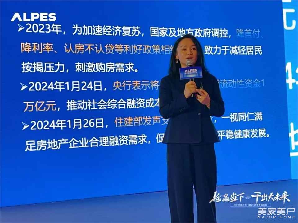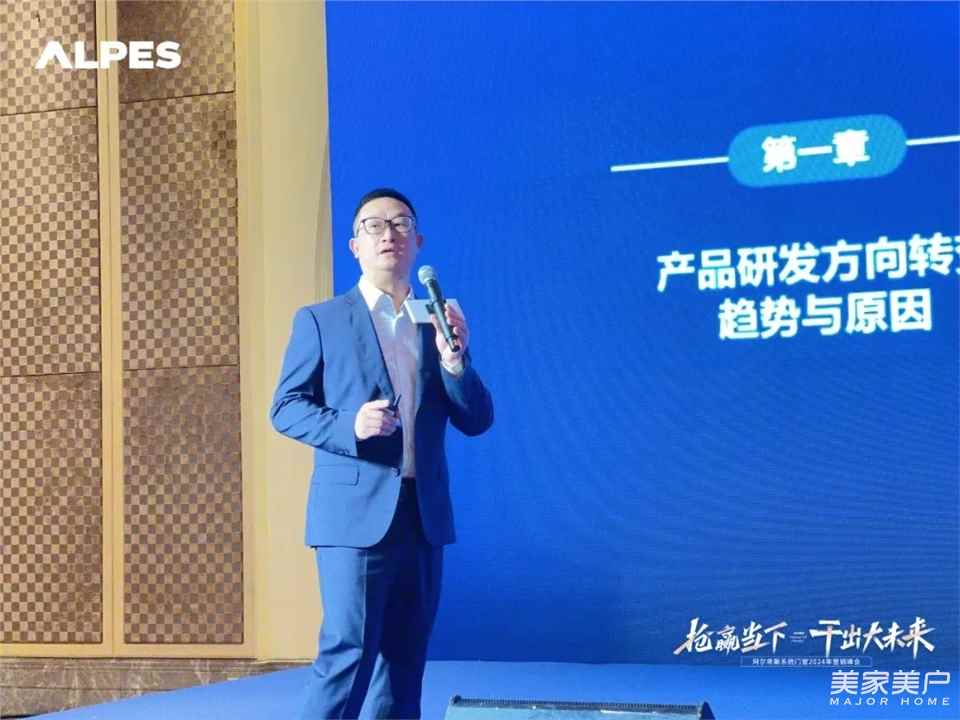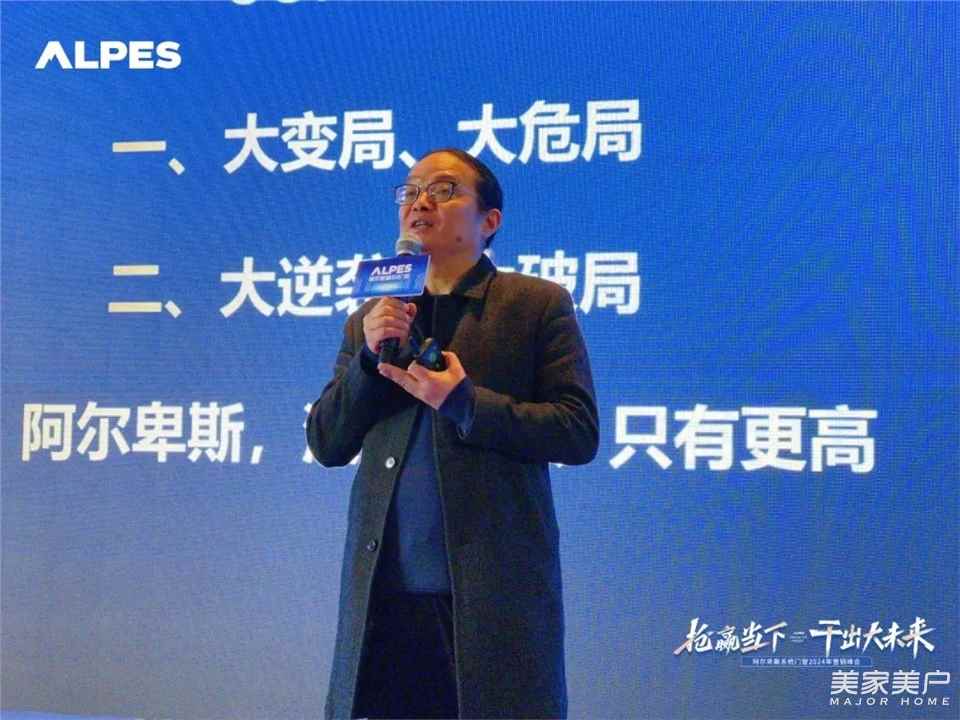 阿尔卑斯系统门窗营销中心总经理殷达明先生回顾和总结了2023年,以及展望了2024年。2024年有两条工作主线,一是用完美交付系统能力建设促进服务理念和服务能力的进步。二是以“经营流量”和“流量经营”的能力突破和精细化运营,来实现业绩增长。