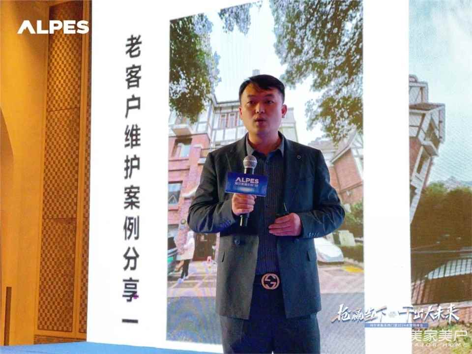 阿尔卑斯系统门窗营销中心副总张伟强先生和营销中心营销支持部经理胡锐先生分别就营销模式创新和服务支持做了深入的讲解。他们的分享不仅具有前瞻性,更具备实操性,为经销商指明了方向和实现目标的路径。