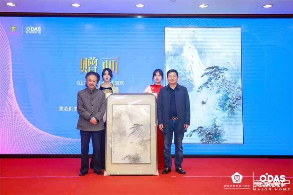 为纪念南京室内设计学会与欧大师隔热门窗的并肩携手,由南京市室内设计学会执行会长陈国欢送出蕴涵无限深意的画作《山高水长》。