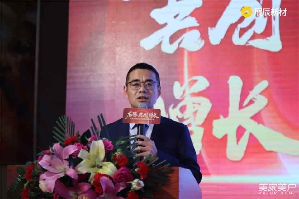 展辰集团董事长陈冰先生在致辞中,对各位嘉宾和经销商伙伴们的到来表示热烈欢迎和衷心感谢。他带领经销商伙伴们回顾了难忘的2023年,过去的一年,在全体经销商、供应商等合作伙伴的大力支持下,在全体展辰员工的共同努力下,取得了来之不易的成绩!陈冰董事长对经销商伙伴们的支持表示衷心的感谢和敬意!勉励经销商伙伴们坚持长期主义价值主张,全力将2024年的经营推上新的高度,共同为涂料、家居行业的健康发展做出积极贡献!